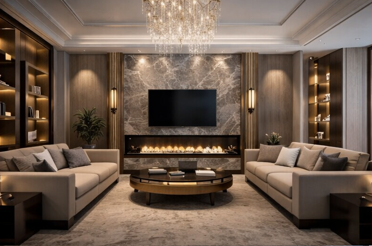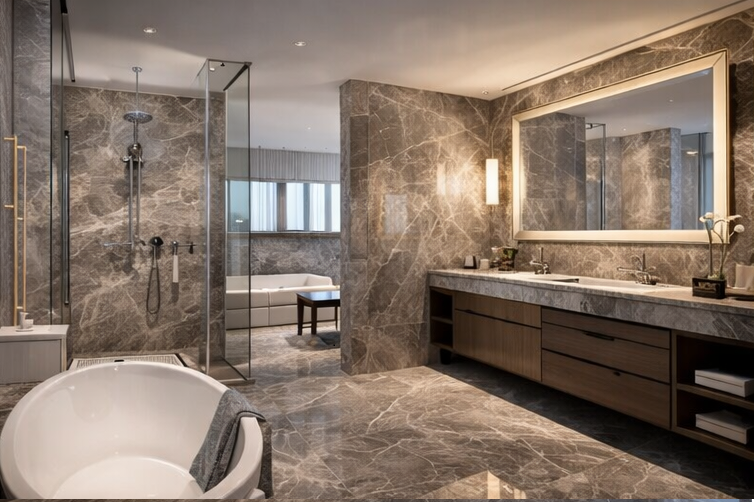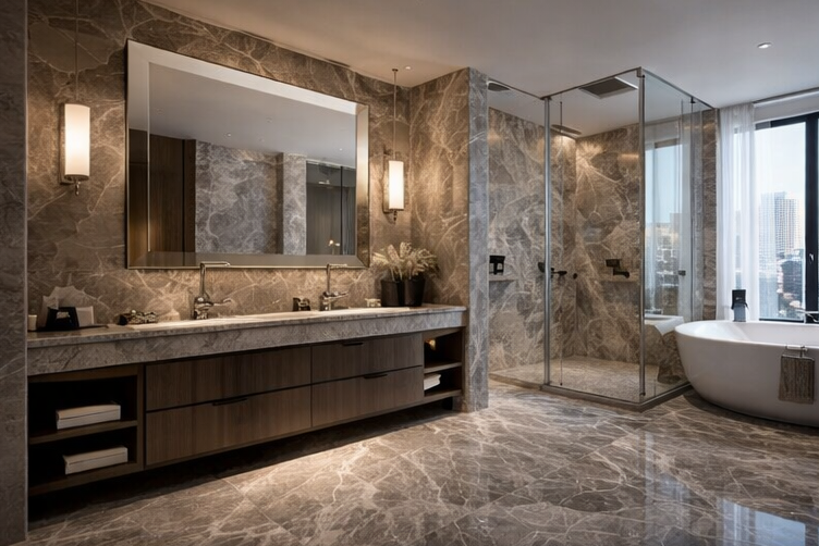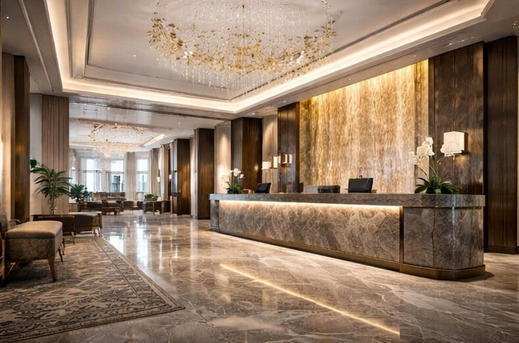 - Marmor wird häufig für elegante, repräsentative Innenräume verwendet.